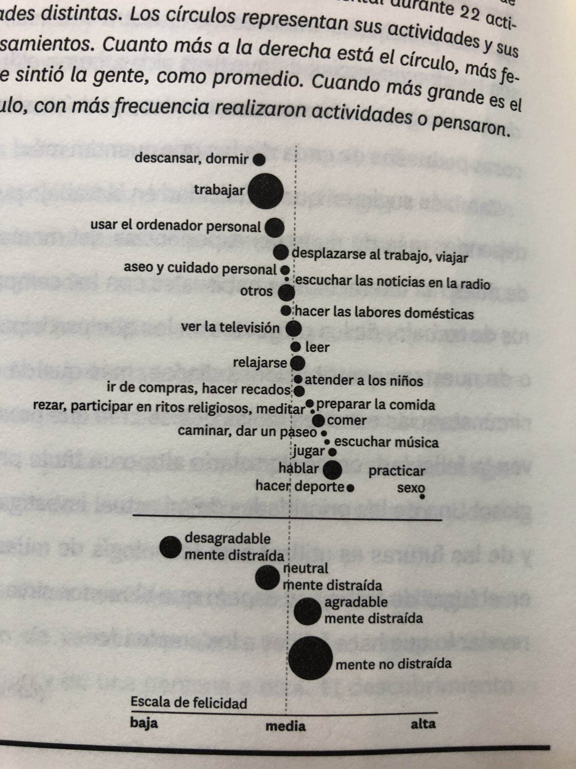 - Los círculos pequeños y bajos (como “trabajo”, “tráfico” o “limpieza del hogar”) se asocian con menor felicidad.