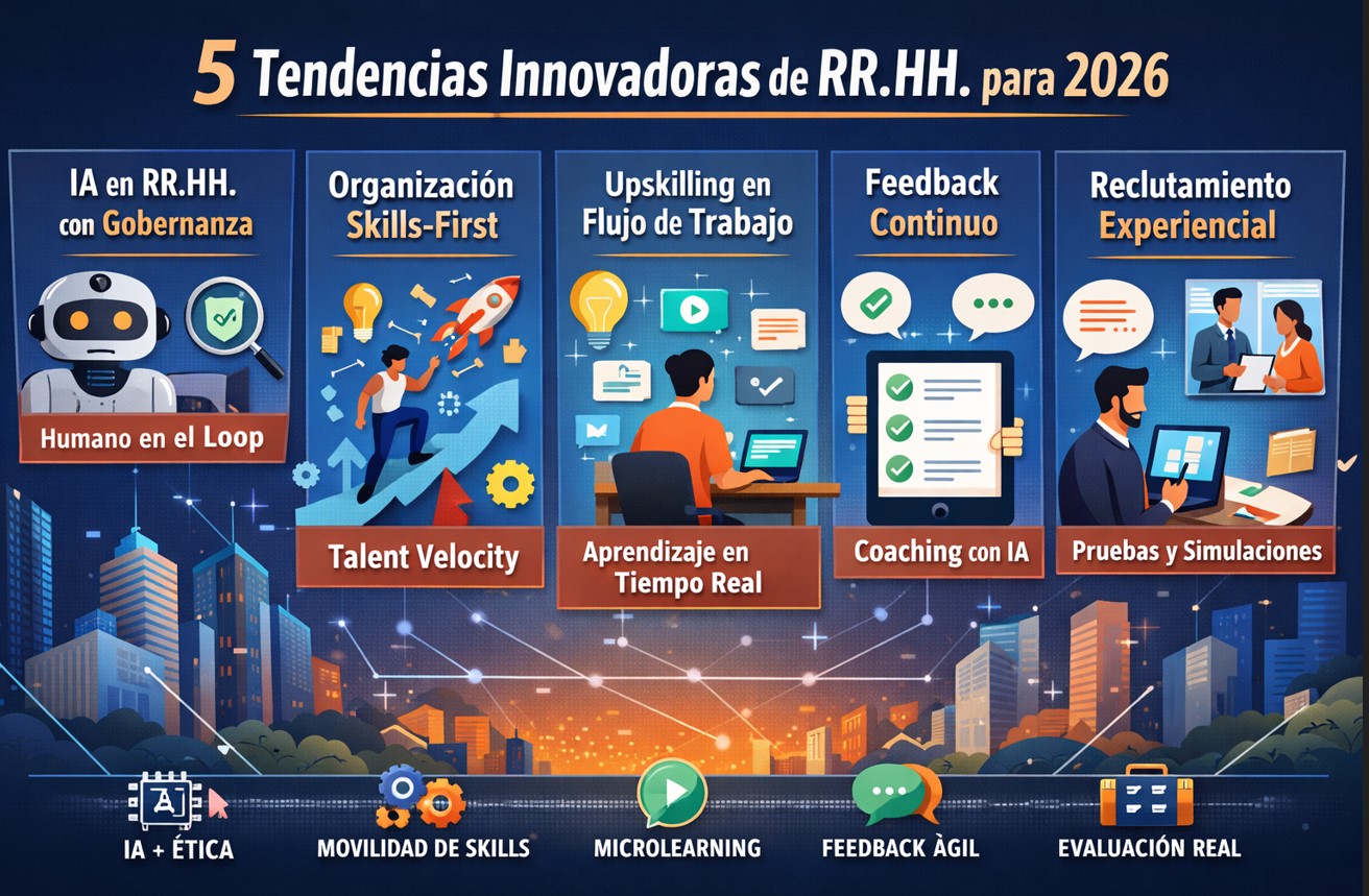 5 tendencias de RR.HH. más innovadoras para 2026 (con evidencia, cómo aplicarlas y ejemplos).